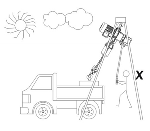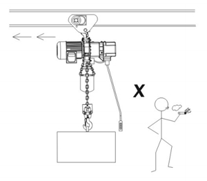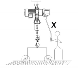 7、操作時(shí)嚴(yán)禁人員在吊運(yùn)物下行走或前進(jìn)方向以及嚴(yán)禁通過人員上方如下圖:
