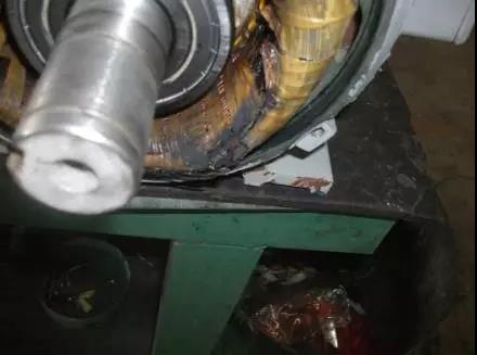 特征:繞組全部變黑色,端部扎帶變色并且變脆甚至斷裂。
