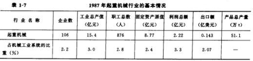 表1-7列出了1987年起重機(jī)械行業(yè)經(jīng)綜合評(píng)價(jià)后的基本情況。