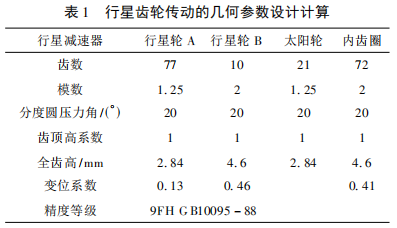 行星減速器的行星齒輪傳動幾何參數(shù)設(shè)計計算:考慮到實際工況,行星減速器的行星齒輪傳動幾何參數(shù)設(shè)計計算如下表所示