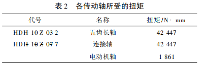 機體各傳動軸的扭矩:起重鏈條承受的載荷選用值,經(jīng)計算,行星齒輪減速器的各傳動軸所受的扭矩如表2所示: