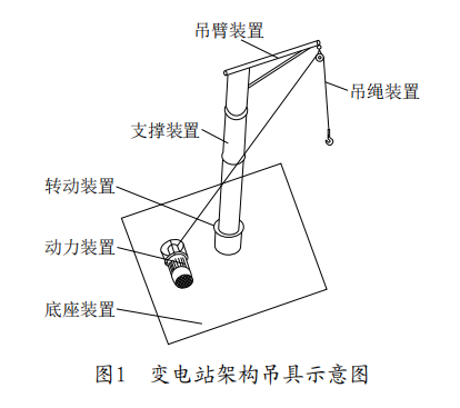 該吊具將具有操作手柄和剎車系統(tǒng)的臥式電動葫蘆安裝在吊裝裝置的底座,作為動力裝置,以增加裝置的穩(wěn)定性,同時采用壓力軸承作為轉(zhuǎn)動裝置,實現(xiàn)吊裝物體在架構(gòu)上的水平移位 ;利用電動葫蘆通過支撐裝置和吊臂裝置實現(xiàn)對吊繩裝置的收放,從而完成對電氣設(shè)備的升降。實際應(yīng)用表明,該吊具實現(xiàn)了以電動吊裝方式代替人力吊裝方式,節(jié)省了大量的人力,降低作業(yè)人員勞動強度,提高了工作安全性。