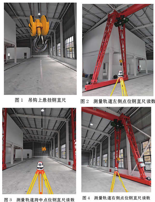 (1)將電動葫蘆運行至軌道左側(cè)(圖2),待鋼直尺靜止后,調(diào)整水準(zhǔn)儀目鏡,讀出目鏡中鋼直尺的刻度S1。
