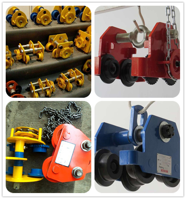 手動(dòng)單軌小車可懸掛在各式小型吊車或安裝在固定的工字鋼上,配以手拉葫蘆組成完整的起重機(jī)械。對(duì)于工作效率要求不高的倉庫,車間和電站,可作為安裝,檢修設(shè)備或吊運(yùn)重物之用。